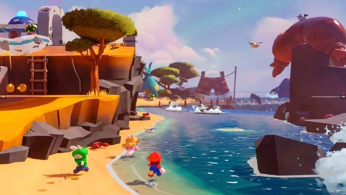 Part turn-based tactical combat, part semi-open world adventure, my fondness for Sparks of Hope crept up on me. Its characters, a mix of Mario stalwarts and a bizarre mix of rabbids (the things that spun out of Ubisoft’s Rayman series) are all charming; the world design feels like a mix of children’s TV show and Nintendo vibes; and the learning curve is spot-on, nailing the intro and then introducing more challenge without sudden spikes. But there’s a harshness to proceedings, sort of hanging in the air like the zestiness of an orange. It’s sharp, but rather pleasant. Yes, a rabbid will joke around in a cutscene that wouldn’t be out of place in a Lego game – but moments later your team is getting absolutely owned by a bunch of nobody enemies who think they’re hot s**t.