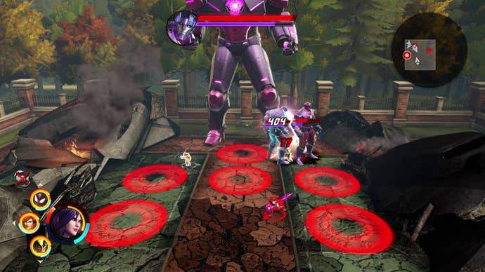 It's even worse when multiple attacks are happening at once. When all four heroes are using their Extreme attacks together and the camera's pulled out, you're mostly hoping that you're facing in the right direction—and that's on a television. Combined with a framerate that tries to stay at 30fps, but can dip hard during those aforementioned Extreme attacks, I'd say that playing Marvel Ultimate Alliance 3 in handheld is a struggle.