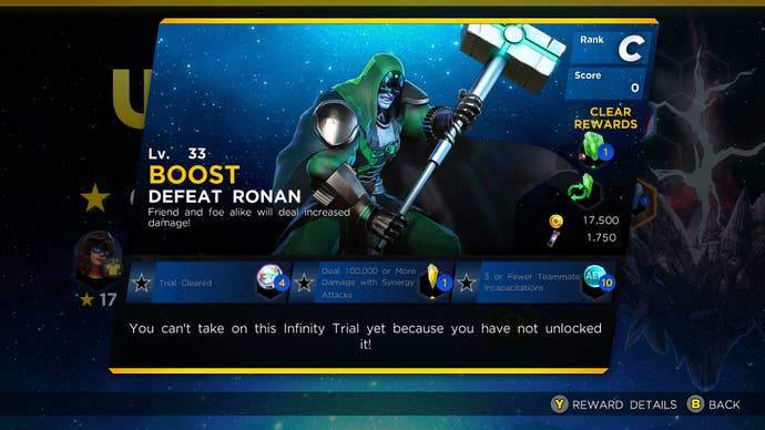 As I noted before, the story campaign in Marvel Ultimate Alliance 3 can be completed in around 15 hours. Outside of that, you'll also probably need to replay parts of it to level other heroes (XP isn't shared), and there are an extensive number of Trials to tackle. These Trials have specific win conditions, like enemies only taking damage from Synergy attacks or having to tackle a section of the game with a single character. These will test you, as complete the first win condition is usually pretty easy, but the third condition is pretty hard on some levels. Not only are these Trials key to unlocking the final four characters in the roster, they also offer up costumes, XP Cubes, and ISO-8 to improve your characters.