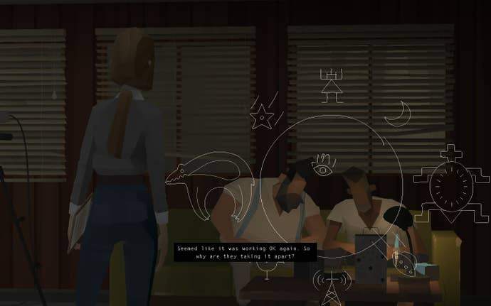 Throughout its near-decade long stretch, Kentucky Route Zero has followed an unlikely band of characters, all tethered together by a word no one really utters: homelessness. There's the main characters, Conway and Shannon. Conway is an aged soul making one last delivery for a small antique shop that's closing down. He has a dog who moves about as sluggishly as he does. The address he's delivering to? It doesn't exist, seemingly. Until it does. Then there's Shannon, who is younger but hardened by her own tragedies. Her parents, once mine workers, died in a flood. She fixes TVs for a living, or used to before the lease on her workshop was suspended. The first thing she asks Conway, if you direct her to, is: "Do you believe in ghosts?" She tags along with Conway on his journey because, well, what else can she do?