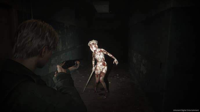 Gunplay also feels good enough; it’s not too clean or over-powered, and James' dodging mechanic is clumsy enough to have him still feel like the everyman protagonist that he is meant to be. Regardless of how ranged weapons felt, however, I always found myself relying on the Wooden Plank or Steel Pipe for the utmost satisfaction in fights. That said, engaging in combat is still frustrating to an extent (as it was in the original game, if you want to talk about being faithful).