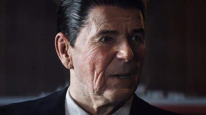 So what does Cold War do with the recognizable energy and shape of Call of Duty? Mostly, it wraps it in a high-production-value paranoiac sheen. Cold War commits hard to both the next generation of consoles and the mediated aesthetic of the 1980s, leading to a product that feels as expansive as it is troubling. This is a fast, clean Call of Duty game, with a strong emphasis on legible action and increased player options in moment-to-moment combat. It's also a game where you are forced to stare at Ronald Reagan's uncannily reproduced visage, see his grandfatherly smile as he does what he does best and orders his subordinates to commit war crimes in the name of American exceptionalism.