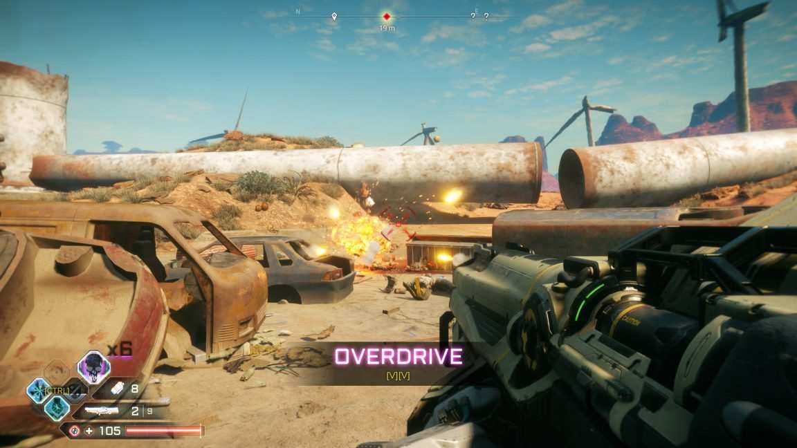 It’s not often I talk about audio in a review because it’s one of those things we all take for granted. You notice it when it’s done badly, but you don’t give it enough credit when it elevates an experience. I’m telling you now: play Rage 2 with headphones or I will come to your house. Triggering Overdrive is like an aural assault, and the music complements every moment. Unfortunately, in the early build I played, there are a couple of issues - some character voice lines cut out, and I once had to exit to desktop because my helicopter rotors got stuck on repeat. I only encountered these issues a couple of times during my 12 hours with the game, however, and it’s easily forgotten when you bat a grenade back at an enemy with the butt of your gun.