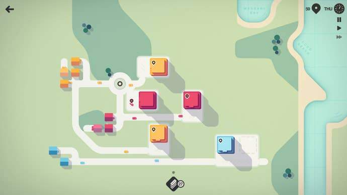 If all of this sounds familiar, that’s because it’s very similar to a Dinosaur Polo Club title, Mini Metro. That game was built around railway infrastructure - but the freedom of the open road means that somehow the options you have on the table at any given moment gives this game’s action the impression of being less constrained than its predecessor. In reality they are very similar, but also different in a few precise and cleverly-calibrated ways that ultimately make Mini Motorways the far superior of the two.