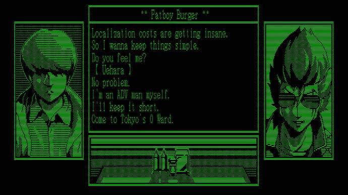 Meanwhile, Travis' trailer serves as a hub, where he can go to shop for new t-shirts, review collectibles, and go to the story portions of the game. That story is largely separate from the playable Death Drive portions and are told in the style of 1980s Japanese PC visual novels complete with Apple 2-era pixelated graphics. It's here that a bulk of Suda 51's ear for post-modern dialogue plays out, with everything from references to movies, video game review sites, and even Deadpool himself. There are plenty of pop-culture references abound in Travis Strikes Again, but I found myself laughing more than groaning. Like Deadpool, Travis is self-aware enough to know when he's becoming obnoxious. The writing also pulls back on the references when needed, introducing something unique to the world of No More Heroes.