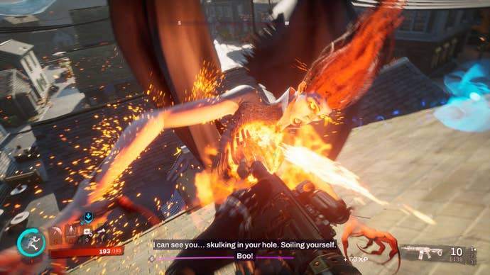 Yet a key piece is missing from Arkane’s combat puzzle: the takedown. While you can insta-kill a human enemy by thwacking them in the small of the back, the resulting thud is less than satisfying - and you won’t be plunging onto an unaware guard from a great height, nor sinking a blade into the throat of a staggered opponent. It’s a baffling omission, depriving both stealth and shootouts of the punctuation you’ll find in Dishonored and Deathloop, or in Far Cry - one of Redfall’s primary inspirations.